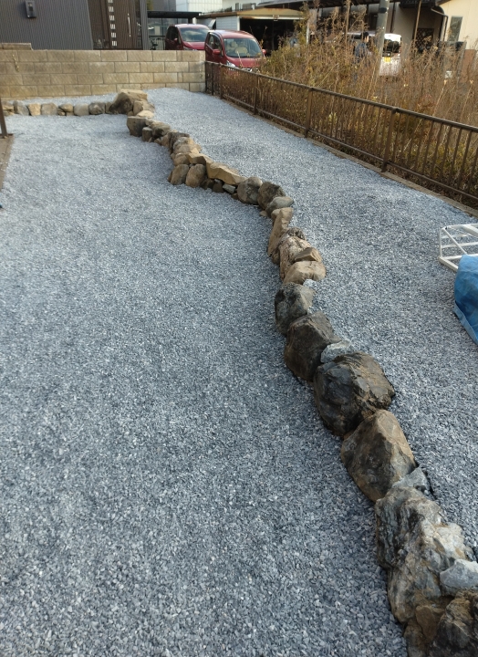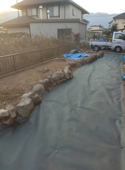 その上に防草シートを敷いてから砂利敷きをしました。