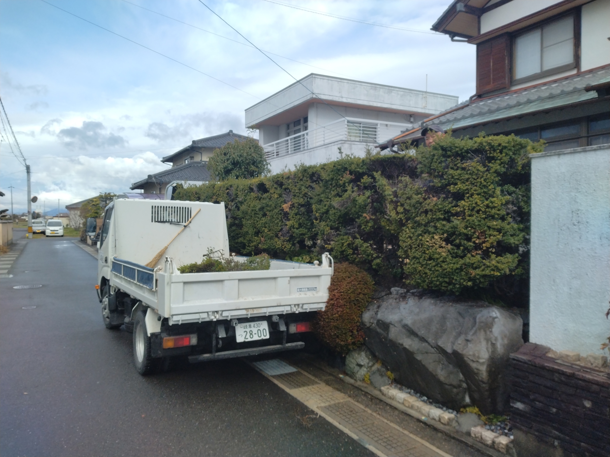剪定作業中、施主様が愛犬と散歩に行くにもご苦労されてみえるのを感じました。